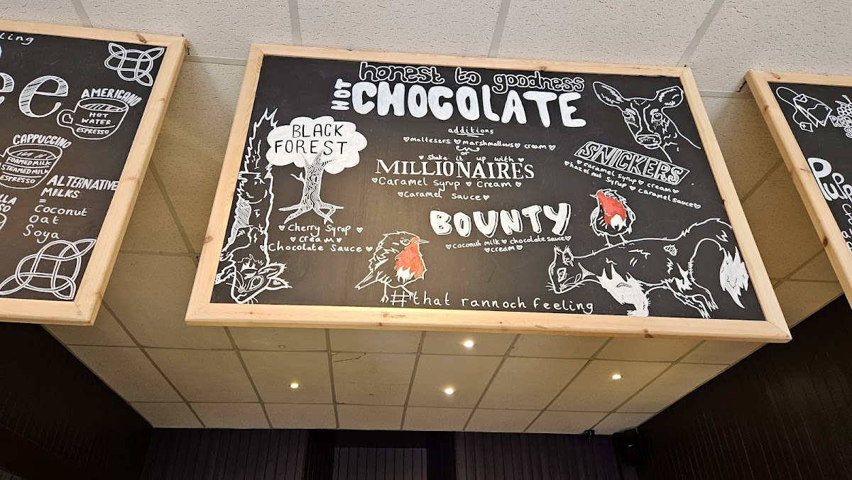 The menu offers a variety of light meals, snacks, and beverages suitable for breakfast, lunch, or casual coffee breaks. Visitors can expect options such as sandwiches, pies, baked potatoes, and soups, with particular highlights including loaded fries and the soup of the day. The drink selection includes coffee specialties and hot chocolates, complementing the food offerings.
