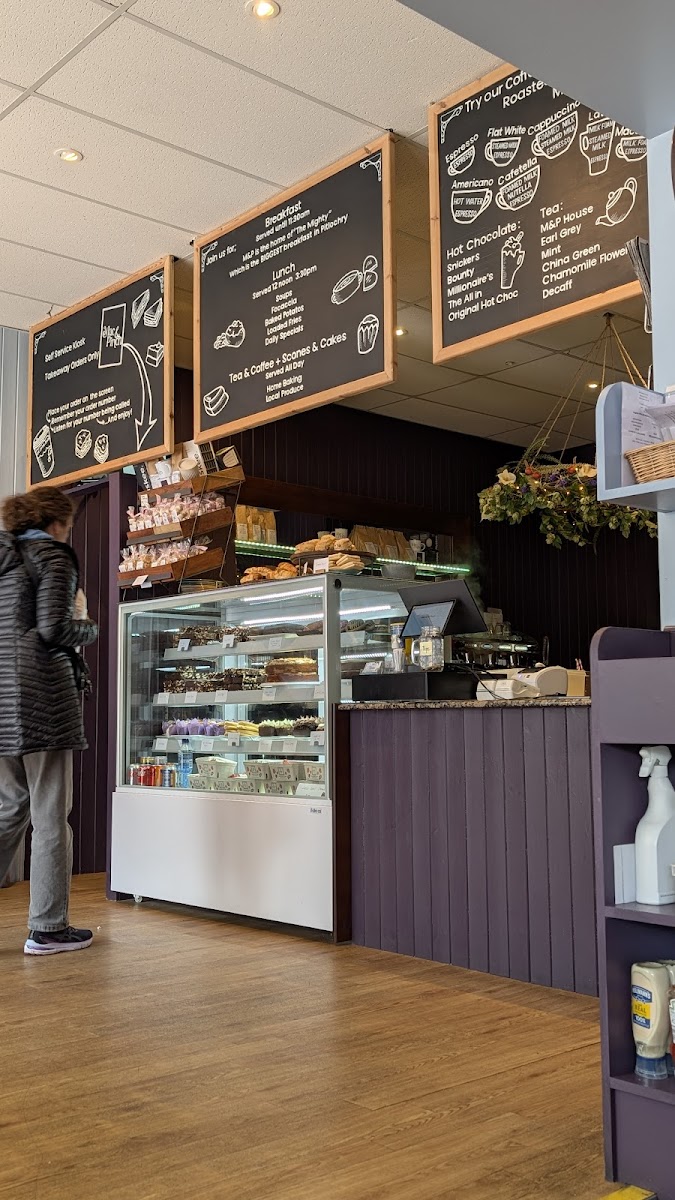 The menu structure supports quick ordering or relaxed dining, featuring items that range from simple sandwiches and sausage rolls to more substantial dishes like stovies and Cullen Skink. Additionally, a selection of bakery items such as scones, cupcakes, and sponges is available to accompany hot drinks.